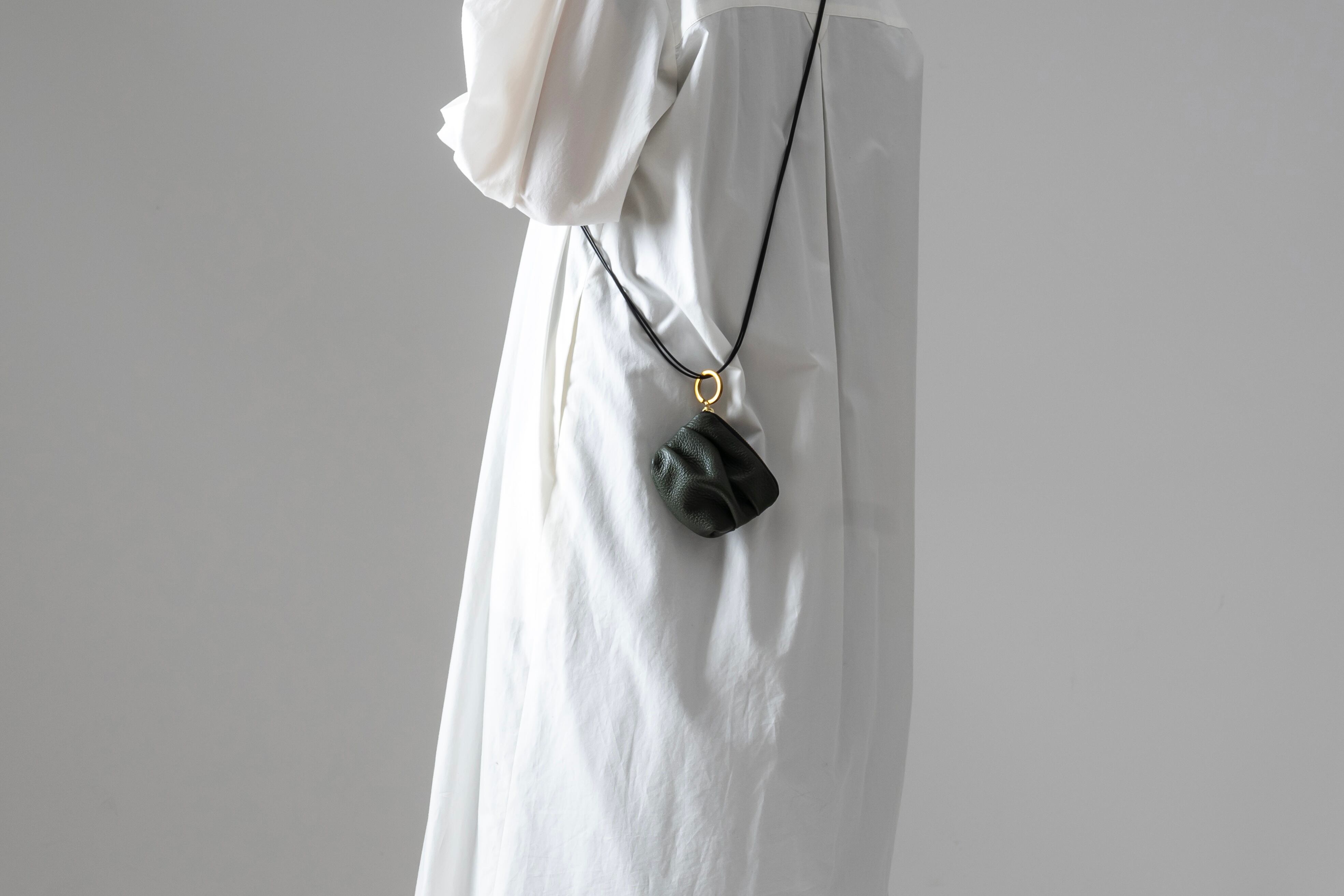 芯入り丸紐から提げてミニポシェット感覚で。